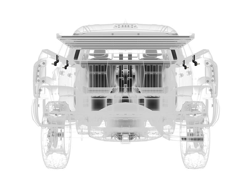 A pair of support brackets that work with the Universal Load Bed Leg / Tall (Pair) and the Load Bed Rack Tray, to provide additional support to the Toyota Tacoma load bed Rack mounting system.